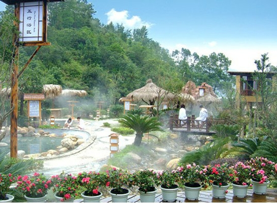 度假村每个温泉池都采用目前最为流行的"不间断注水和自然流失"的水流循环设计,每天按序排水、清池、消毒,始终保持泉水的水质和卫生。在温泉区另设有干蒸房、湿蒸房、健身房;温泉部二楼设有香熏屋、美容厅、棋牌室、按摩房、自费网吧以及豪华高档的休息厅,休息厅免费提供各种新鲜的水果及可口的各种饮品,可供宾客沐浴温泉后在此修身养性。整个露天区域共二十多个露天温泉池,让您或在享受温泉时,倾听鸟语花香,通过风铃传来悠远的声音,达到冥想放松。此刻您可以什么都不想,也可以什么都想,让您完全与大自然合二为一,让您感受大自然的恩赐;或通过温泉使您疲惫的身躯得以恢复活力,或通过温泉塑造您完美的身材。